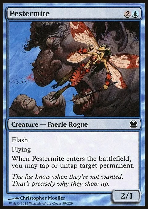 Flash Flying When Pestermite enters the battlefield, you may tap or untap target permanent.
