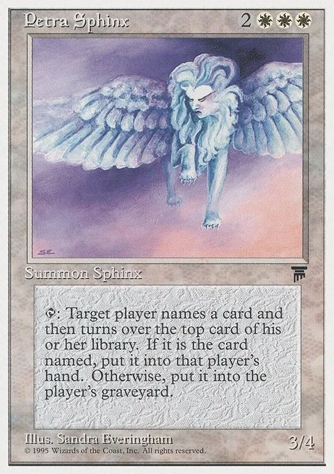 T: Target player names a card and then turns over the top card of his or her library. If it is the card named, put it into that player’s hand. Otherwise, put it into the player’s graveyard.