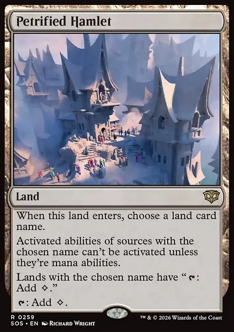 When this land enters, choose a land card name. Activated abilities of sources with the chosen name can't be activated unless they're mana abilities. Lands with the chosen name have "{T}: Add {C}." {T}: Add {C}.