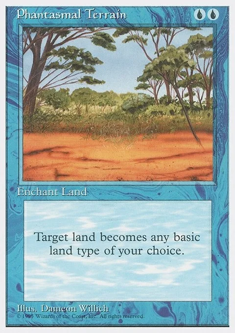 Enchant land As Phantasmal Terrain enters the battlefield, choose a basic land type. Enchanted land is the chosen type.