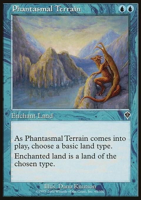 Enchant land As Phantasmal Terrain enters the battlefield, choose a basic land type. Enchanted land is the chosen type.