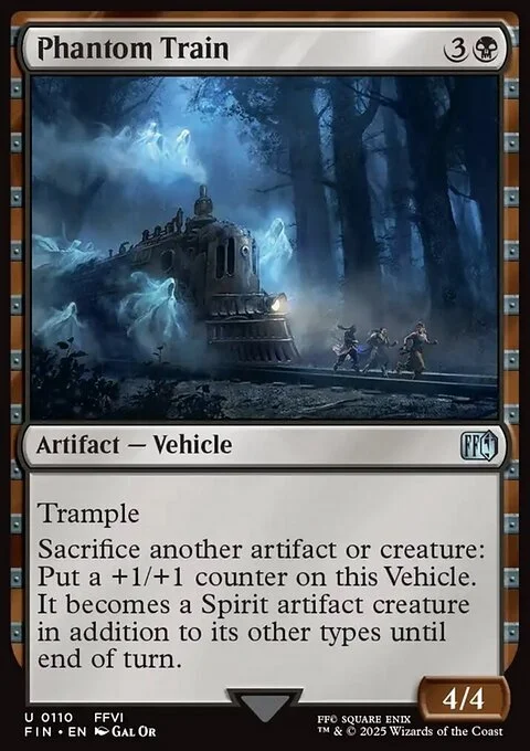 Trample Sacrifice another artifact or creature: Put a +1/+1 counter on this Vehicle. It becomes a Spirit artifact creature in addition to its other types until end of turn.