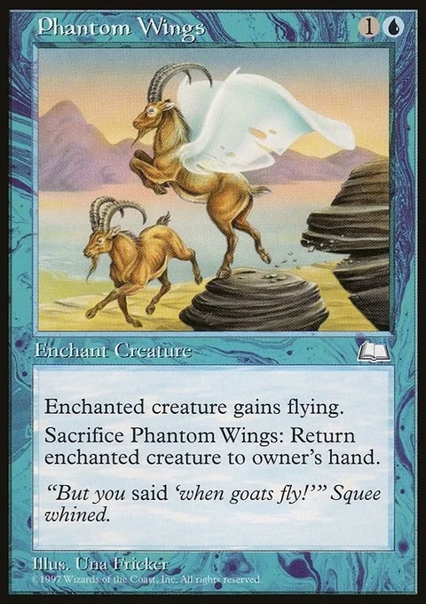 Enchant creature Enchanted creature has flying. Sacrifice Phantom Wings: Return enchanted creature to its owner's hand.