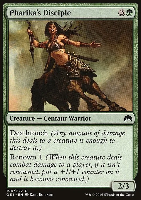 Deathtouch (Any amount of damage this deals to a creature is enough to destroy it.) Renown 1 (When this creature deals combat damage to a player, if it isn't renowned, put a +1/+1 counter on it and it becomes renowned.)