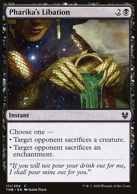 Choose one — • Target opponent sacrifices a creature of their choice. • Target opponent sacrifices an enchantment of their choice.