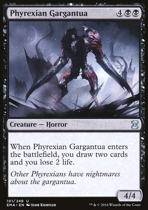 When Phyrexian Gargantua enters the battlefield, you draw two cards and you lose 2 life.