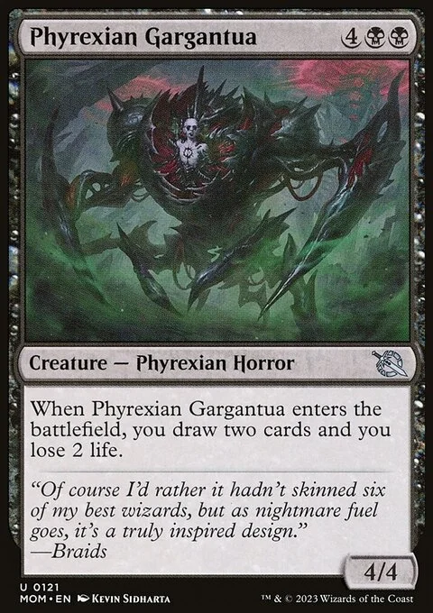 When Phyrexian Gargantua enters the battlefield, you draw two cards and you lose 2 life.