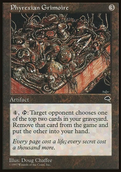 4, T: Target opponent chooses one of the top two cards in your graveyard. Remove that card from the game and put the other into your hand.