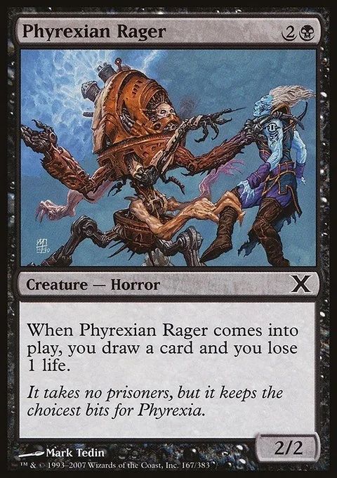 When Phyrexian Rager enters, you draw a card and you lose 1 life.