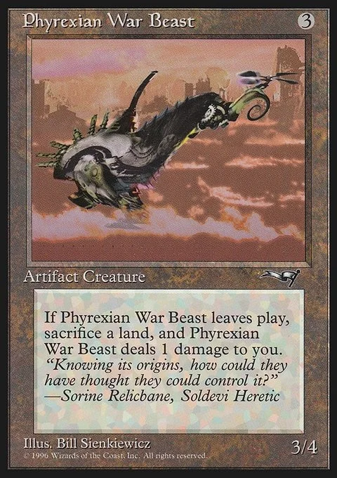 When Phyrexian War Beast leaves the battlefield, sacrifice a land and Phyrexian War Beast deals 1 damage to you.