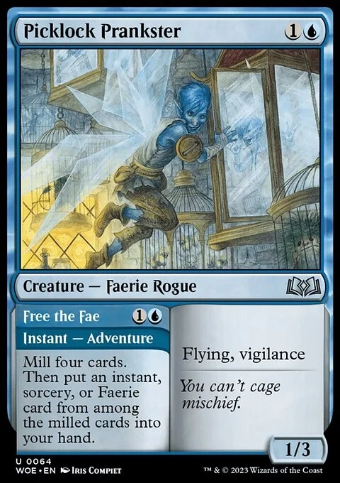 Picklock Prankster Flying, vigilance Free the Fae Mill four cards. Then put an instant, sorcery, or Faerie card from among the milled cards into your hand.