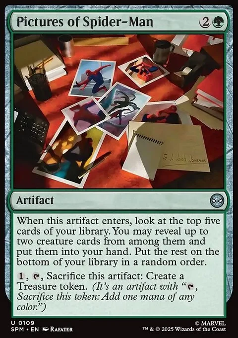 When this artifact enters, look at the top five cards of your library. You may reveal up to two creature cards from among them and put them into your hand. Put the rest on the bottom of your library in a random order.