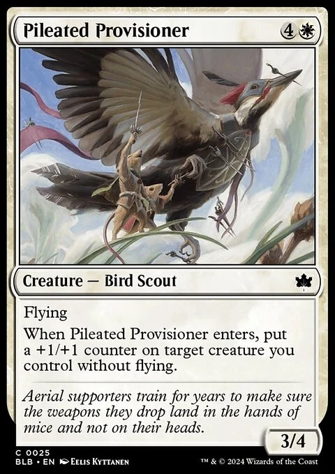 Flying When this creature enters, put a +1/+1 counter on target creature you control without flying.
