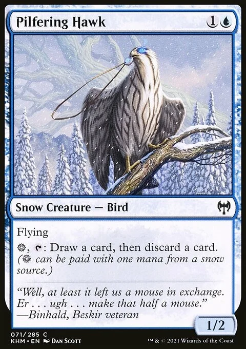 Flying {S}, {T}: Draw a card, then discard a card. ({S} can be paid with one mana from a snow source.)