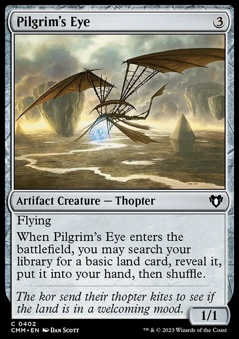 Flying When this creature enters, you may search your library for a basic land card, reveal it, put it into your hand, then shuffle.