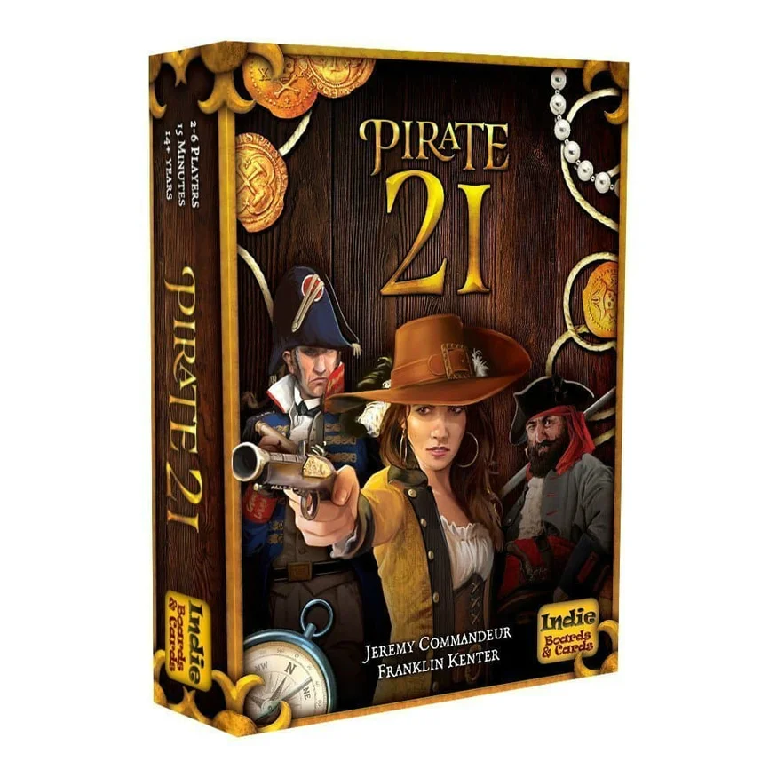 Pirate 21 is competitive card game for 2-6 players. Each player tries to get 21 without going over. Sound familiar? It is, but in this version of 21 you have pirates that can knock an opponent out of the round, mates and captains that can swap cards, and princesses to defend you. Draw your cards, and bring your best trash-talking pirate voice to the table.