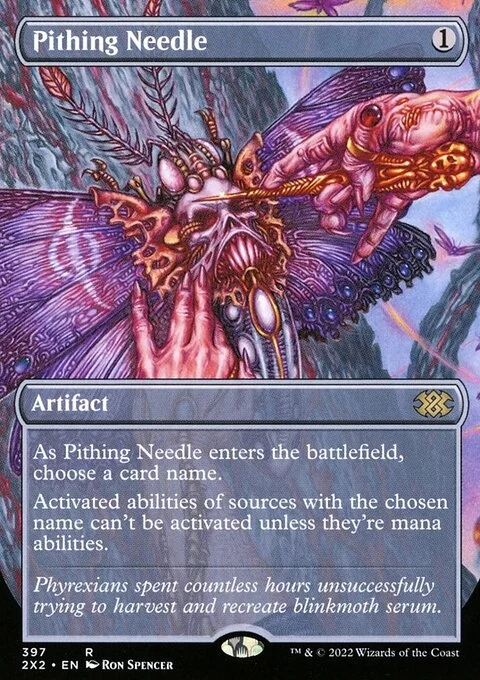 As this artifact enters, choose a card name. Activated abilities of sources with the chosen name can't be activated unless they're mana abilities.