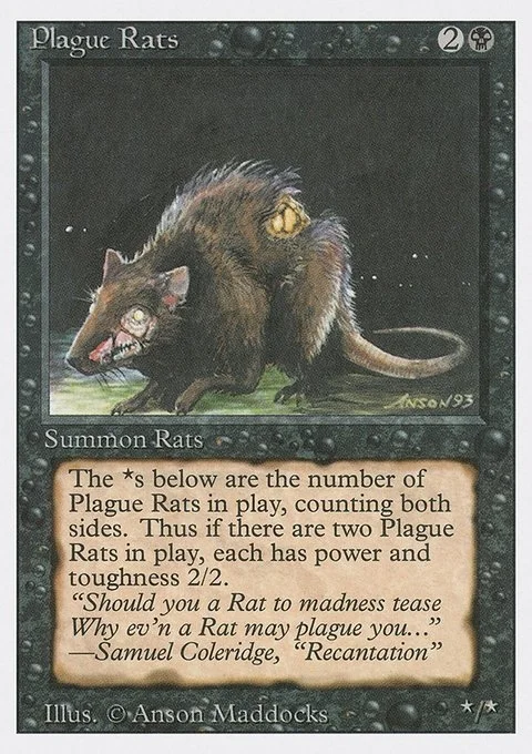 Plague Rats's power and toughness are each equal to the number of creatures named Plague Rats on the battlefield.