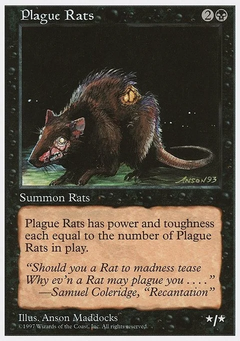 Plague Rats's power and toughness are each equal to the number of creatures named Plague Rats on the battlefield.