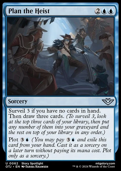 Surveil 3 if you have no cards in hand. Then draw three cards. (To surveil 3, look at the top three cards of your library, then put any number of them into your graveyard and the rest on top of your library in any order.)