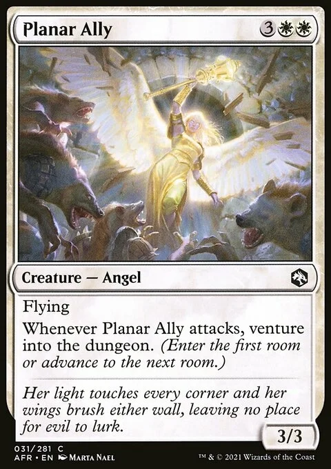 Flying Whenever Planar Ally attacks, venture into the dungeon. (Enter the first room or advance to the next room.)