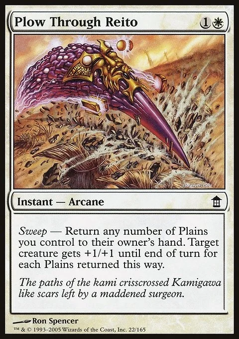 Sweep — Return any number of Plains you control to their owner's hand. Target creature gets +1/+1 until end of turn for each Plains returned this way.
