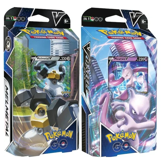 Unleash mental might or metal mayhem with a deck led by Mewtwo V or Melmetal V! Mewtwo V leads an elusive team of Psychic types, and Melmetal V brings the crushing power of Metal types, so you can land quick hits turn after turn, keep Energy in play, and master all the tricks of these two V Battle Decks!