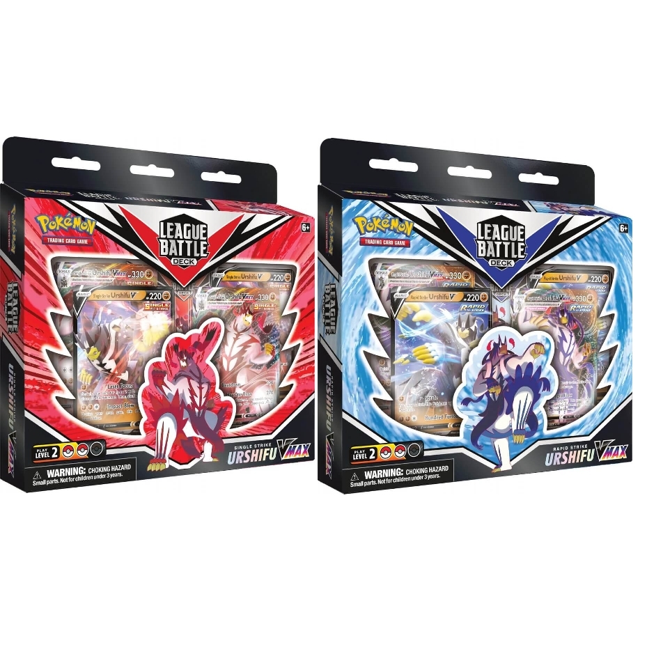 Choose your moment, and strike with raw power! Or strike a thousand times—each time one step closer to victory! Single Strike Urshifu VMAX or Rapid Strike Urshifu VMAX is yours in a powerful, League-ready deck for skilled Trainers and Pokémon TCG players. With a slew of cards including premium foil cards, sought-after power cards, and a well-tuned set of Pokémon and Trainer cards, these League Battle Decks do more than feature one of the most popular Pokémon of the Galar region: they put together all the elements to support you in your next match against friends and neighbors, in person or online! Ready to play and loaded with the potent combos of either Single Strike Urshifu VMAX or Rapid Strike Urshifu VMAX!