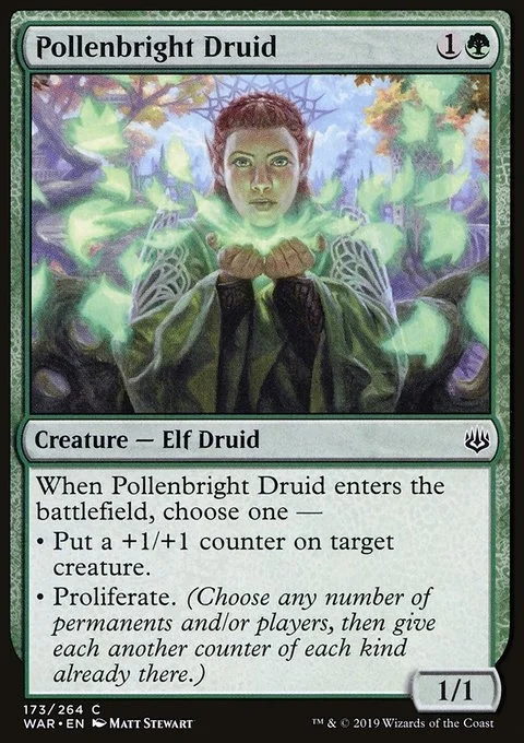 When this creature enters, choose one — • Put a +1/+1 counter on target creature. • Proliferate. (Choose any number of permanents and/or players, then give each another counter of each kind already there.)
