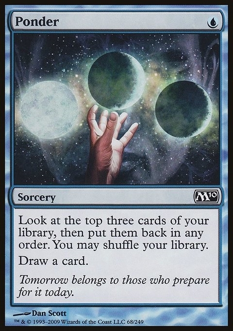 Look at the top three cards of your library, then put them back in any order. You may shuffle. Draw a card.