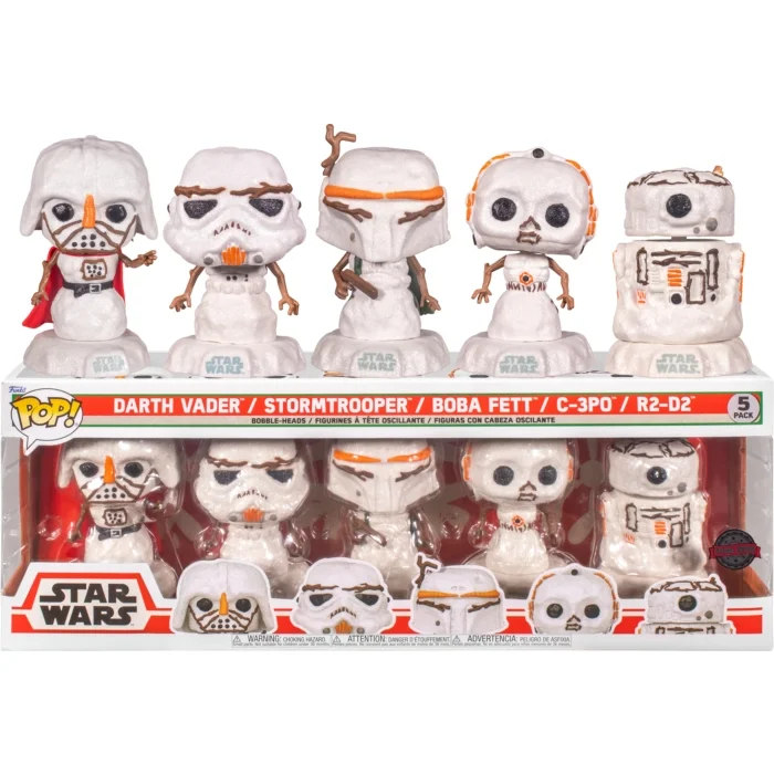 This festive set includes Pops! Darth Vader, Stormtrooper, Boba-Fett, C-3PO, and R2-D2 as snowmen.