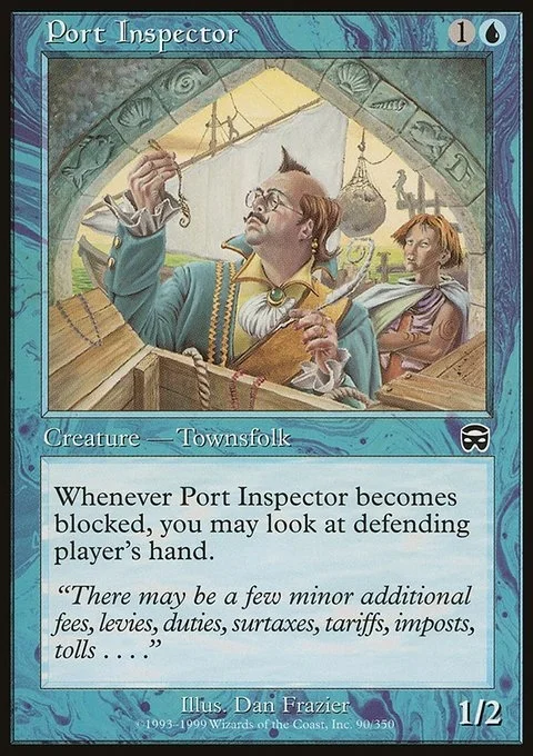 Whenever Port Inspector becomes blocked, you may look at defending player's hand.