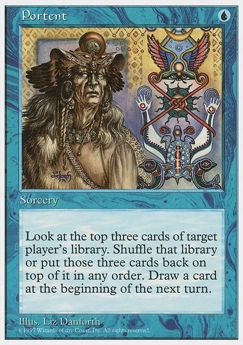 Look at the top three cards of target player's library, then put them back in any order. You may have that player shuffle. Draw a card at the beginning of the next turn's upkeep.