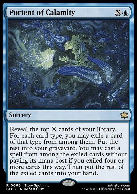 Reveal the top X cards of your library. For each card type, you may exile a card of that type from among them. Put the rest into your graveyard. You may cast a spell from among the exiled cards without paying its mana cost if you exiled four or more cards this way. Then put the rest of the exiled cards into your hand.