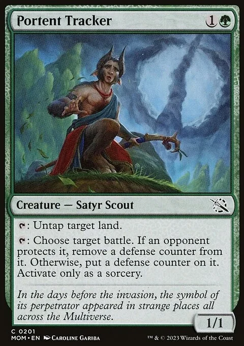 {T}: Untap target land. {T}: Choose target battle. If an opponent protects it, remove a defense counter from it. Otherwise, put a defense counter on it. Activate only as a sorcery.