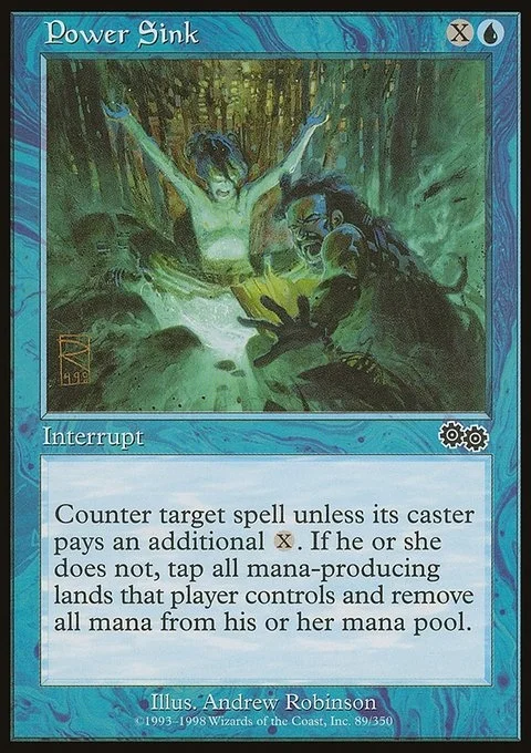 Counter target spell unless its controller pays {X}. If that player doesn't, they tap all lands with mana abilities they control and lose all unspent mana.