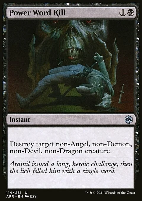Destroy target non-Angel, non-Demon, non-Devil, non-Dragon creature.