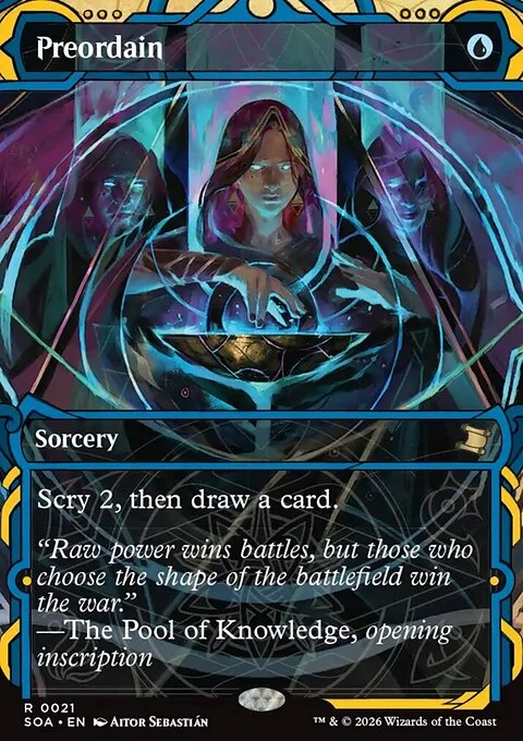 Scry 2, then draw a card. (To scry 2, look at the top two cards of your library, then put any number of them on the bottom and the rest on top in any order.)