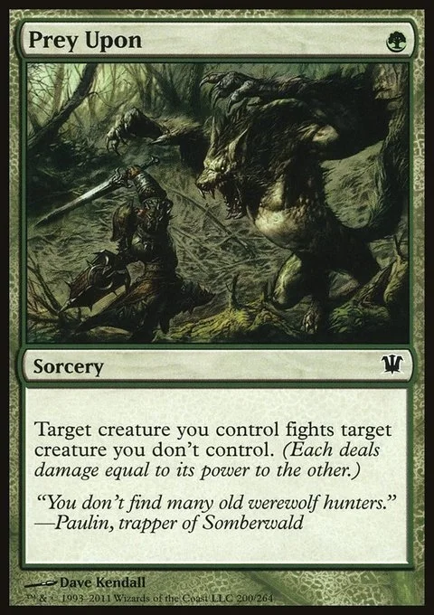 Target creature you control fights target creature you don't control. (Each deals damage equal to its power to the other.)