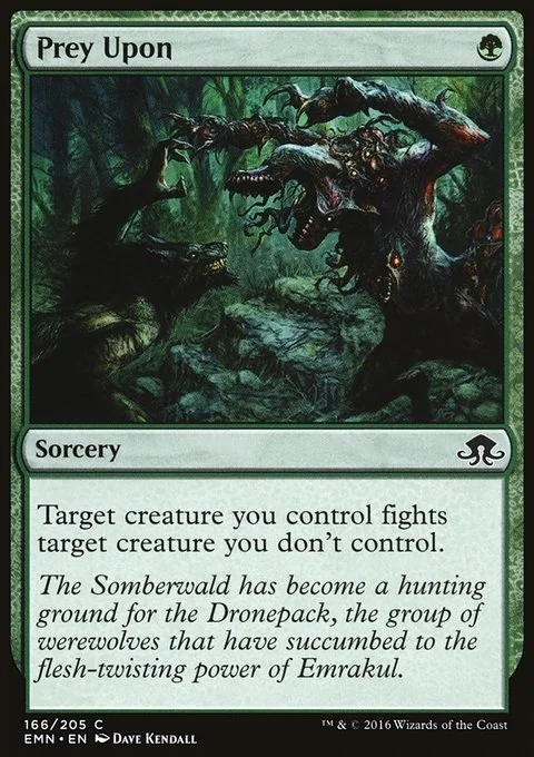 Target creature you control fights target creature you don't control. (Each deals damage equal to its power to the other.)