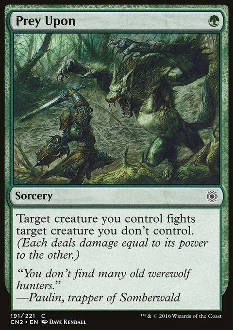 Target creature you control fights target creature you don't control. (Each deals damage equal to its power to the other.)