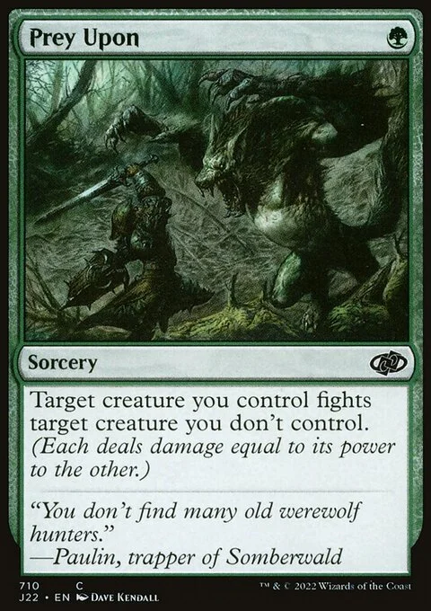 Target creature you control fights target creature you don't control. (Each deals damage equal to its power to the other.)