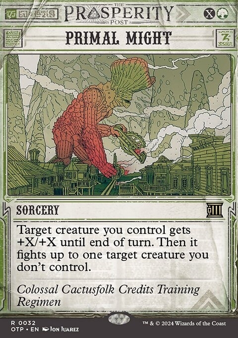 Target creature you control gets +X/+X until end of turn. Then it fights up to one target creature you don't control. (Each deals damage equal to its power to the other.)