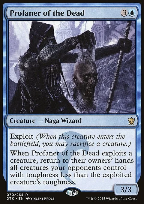 When Profaner of the Dead exploits a creature, return to their owners' hands all creatures your opponents control with toughness less than the exploited creature's toughness.