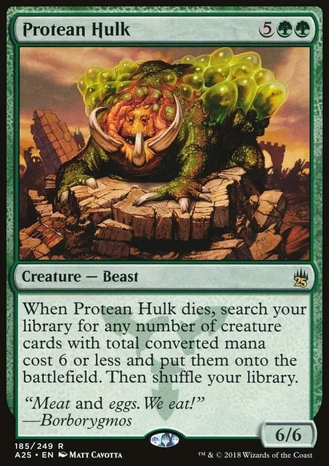 When this creature dies, search your library for any number of creature cards with total mana value 6 or less, put them onto the battlefield, then shuffle.