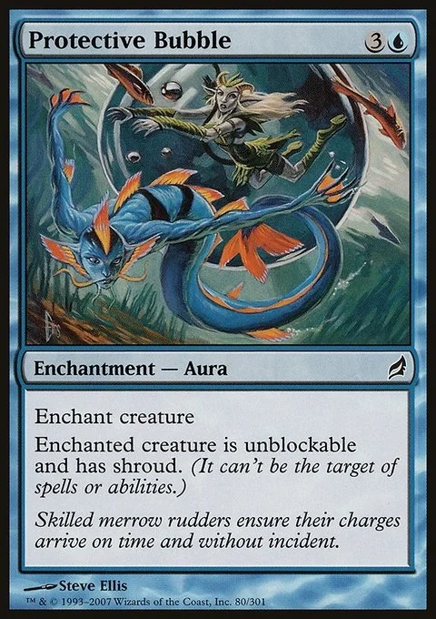 Enchant creature Enchanted creature can't be blocked and has shroud. (It can't be the target of spells or abilities.)