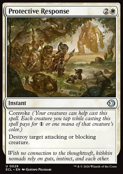 Convoke (Your creatures can help cast this spell. Each creature you tap while casting this spell pays for {1} or one mana of that creature's color.) Destroy target attacking or blocking creature.