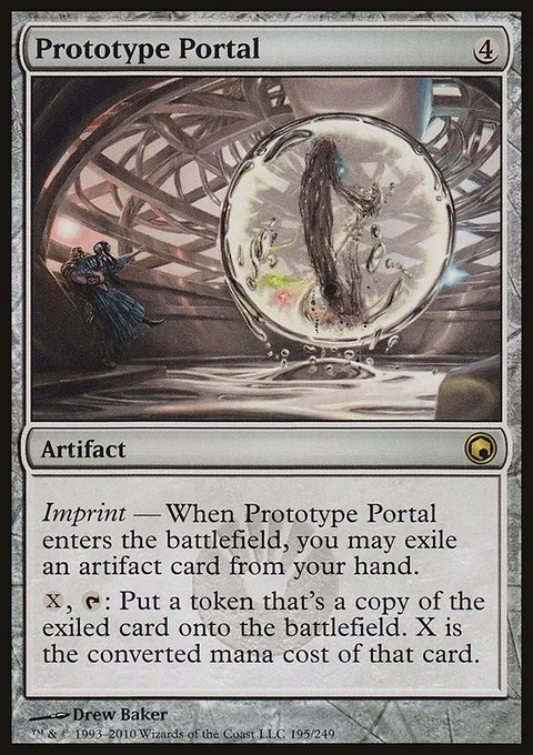 Imprint — When Prototype Portal enters the battlefield, you may exile an artifact card from your hand. {X}, {T}: Create a token that's a copy of the exiled card. X is the converted mana cost of that card.
