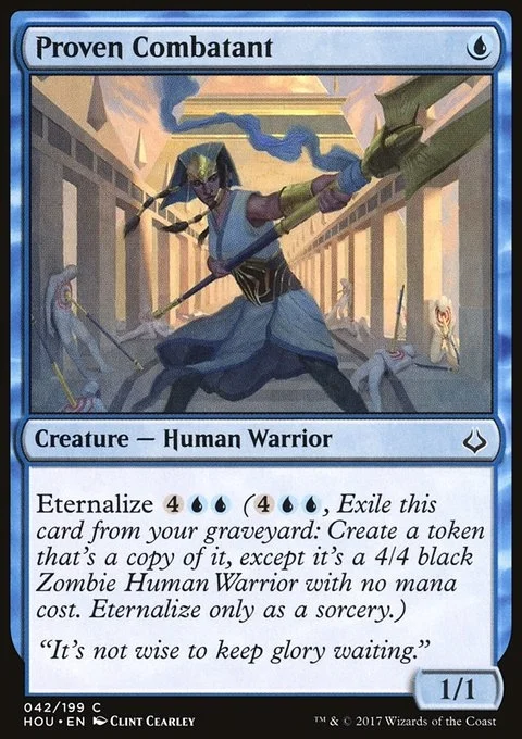 Eternalize {4}{U}{U} ({4}{U}{U}, Exile this card from your graveyard: Create a token that's a copy of it, except it's a 4/4 black Zombie Human Warrior with no mana cost. Eternalize only as a sorcery.)