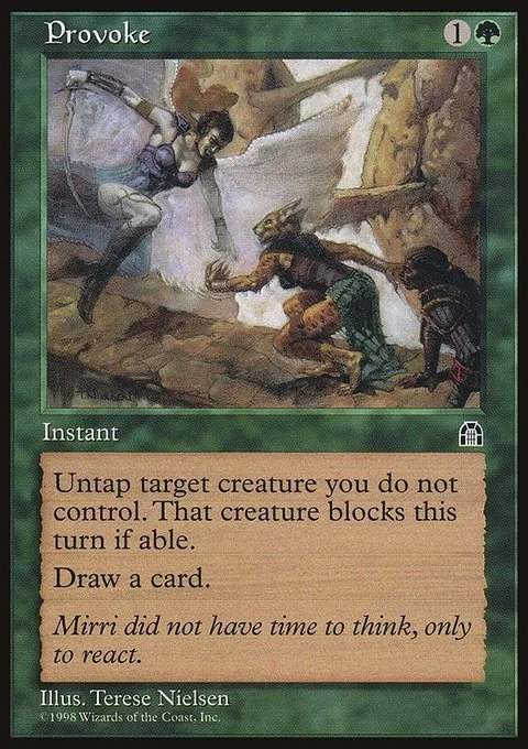 Untap target creature you don't control. That creature blocks this turn if able. Draw a card.